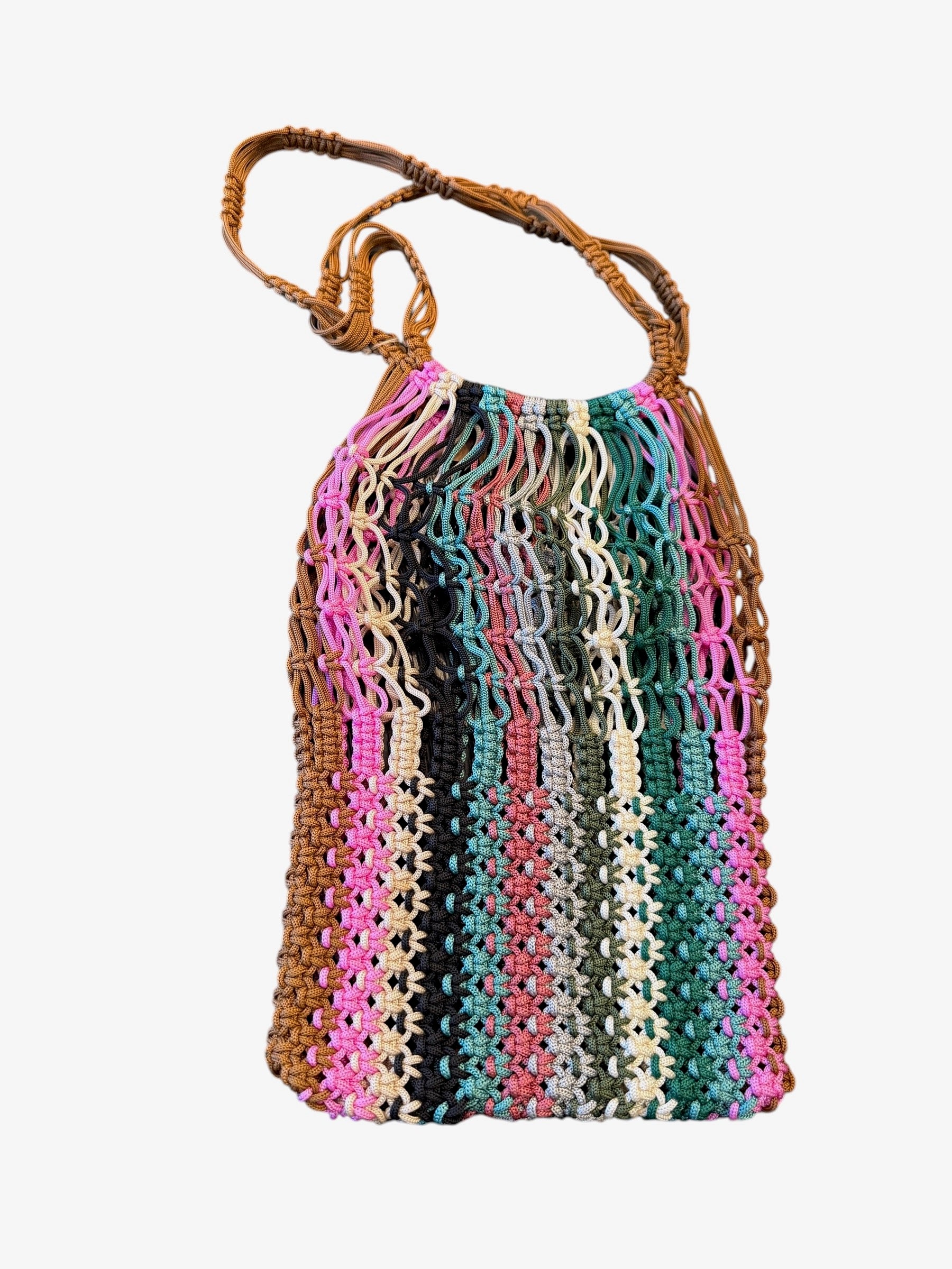 Handwoven in Morocco using traditional macramé techniques, the Medina Market Weave Bag is a celebration of colour, craft, and everyday beauty. Lightweight yet surprisingly strong, each bag is intricately knotted by hand, creating an open, flexible weave that expands effortlessly to hold market finds, beach essentials, or daily carry-alls.